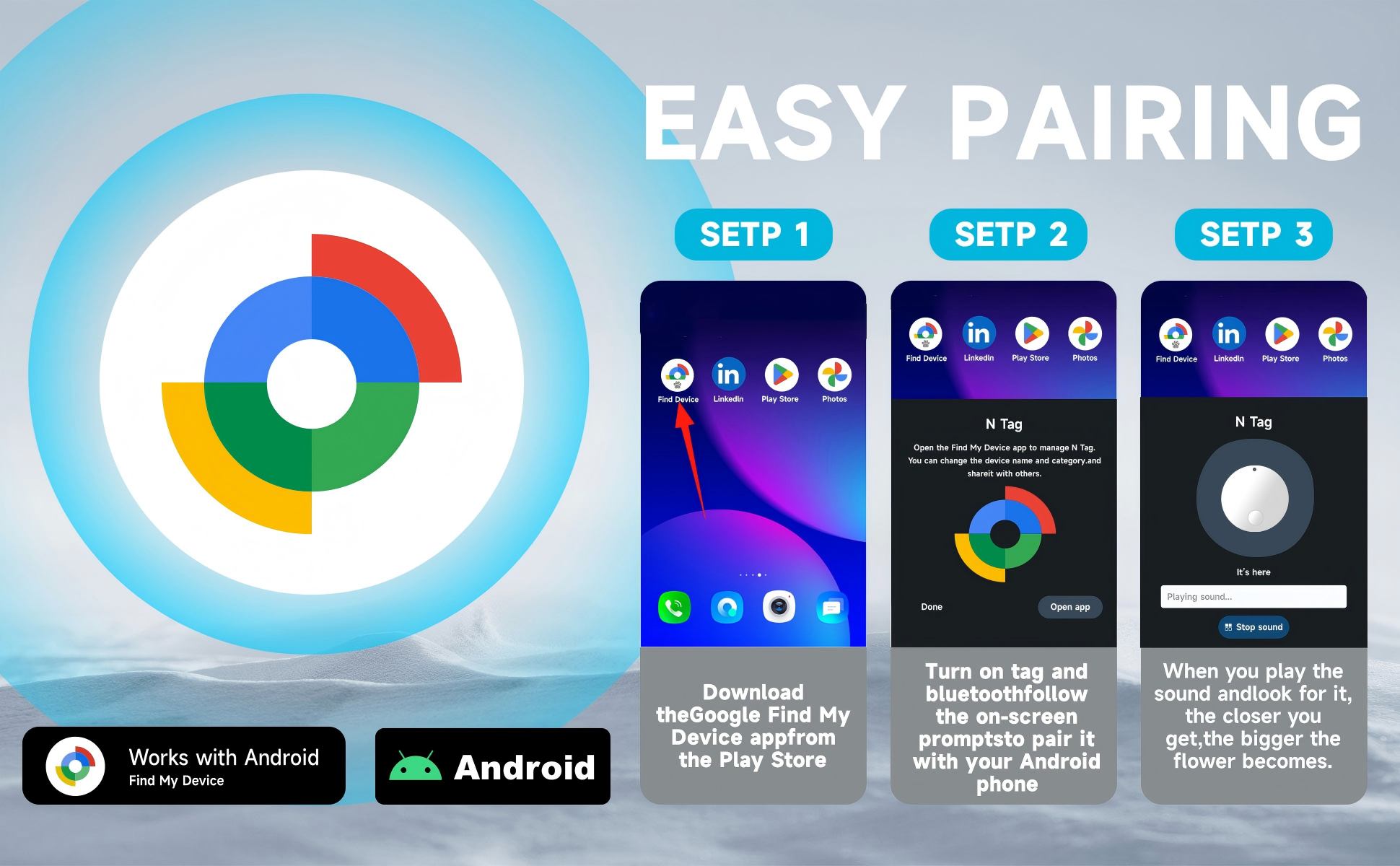 As a certified product in Google’s "Find My Device" ecosystem, the T20 is tailor-made for Android users: it works flawlessly with mainstream brands like Samsung, Google Pixel, Xiaomi, OPPO, and Vivo. Whether you own a budget phone or a flagship model, just open the official "Find My Device" app to connect – no need to download random extra software.