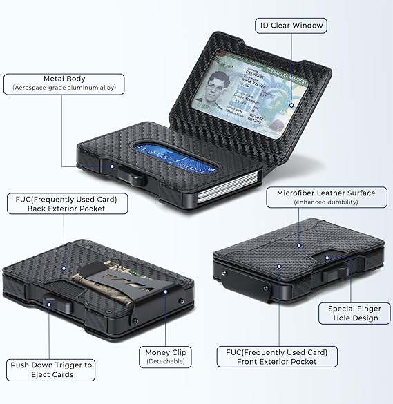 This tiny powerhouse packs a surprising punch for storage: it holds 7-8 cards (via the quick-access pop-up case) + 5-10 folded bills, plus smart front/back pockets (and a clear ID window) for stashing extras — think keys, coins, even an AirTag. Every daily carry essential fits snugly, no bulky bulge required.