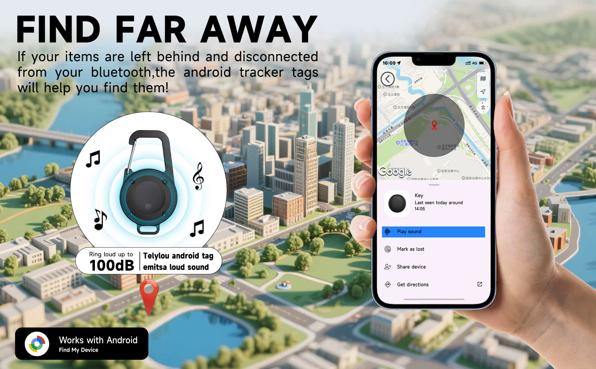 This Metal Keychain Tracker is inserted with our team’s newly developed tracker, which is Google-certified. All you need to do is download the Find My Device app for connection. The Metal Keychain Tracker also equips a high-volume alert. You can hear its sound from distance.